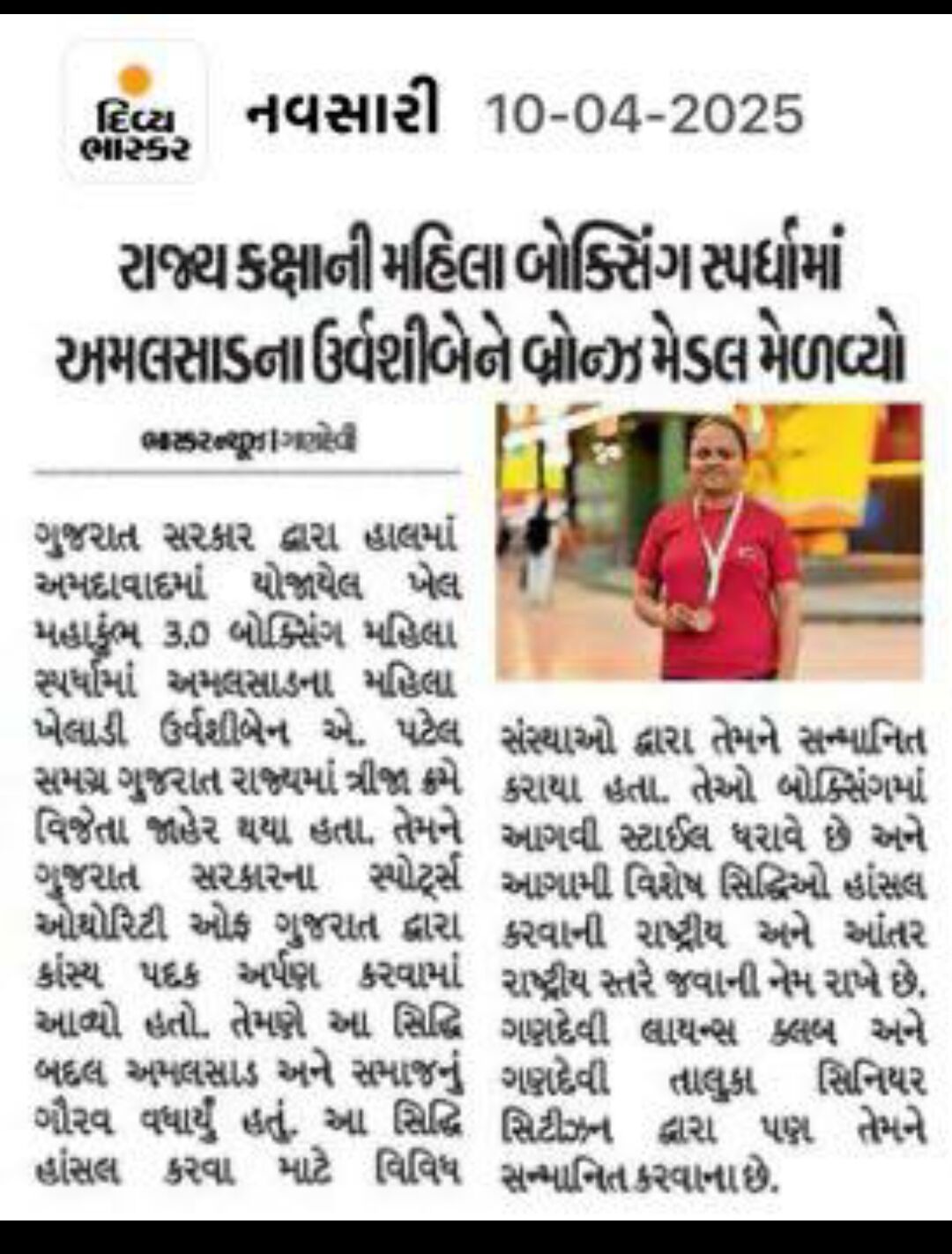 It us a matter of immense pleasure to announce that out T.Y.B.A Home science student - Urvashi Patel got bronze medal 🏅 at State lavel boxing championship 🏆. Our College congrats her for this golden opportunity 👏